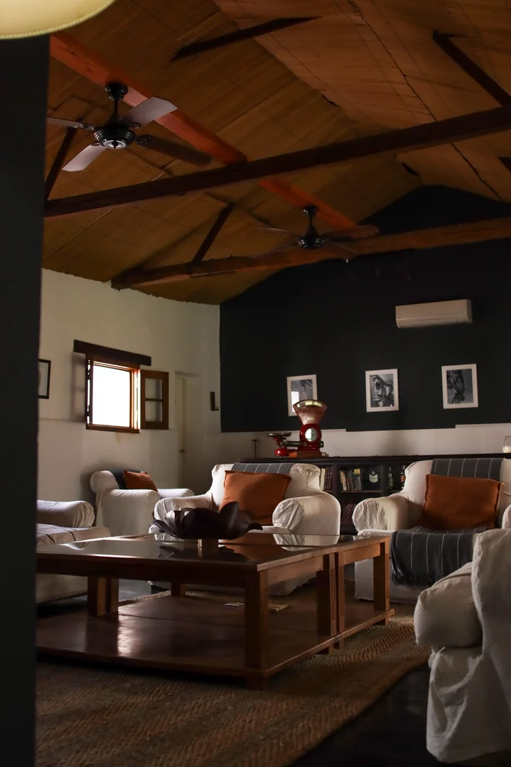 La ambientación respeta la estructura original de la casa, con materiales nobles, tonos neutros y mobiliario acorde al estilo rural. La propuesta prioriza simplicidad, coherencia y descanso visual.